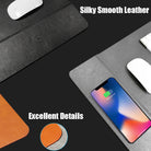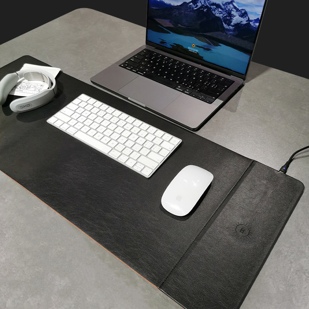 Upgrade your workspace with the Big Leather Wireless Charging Mouse Pad! Enjoy the convenience of a large, smooth leather surface that charges your wireless mouse while you work. Say goodbye to tangled cords and hello to a clutter-free desk. Perfect for anyone looking for a stylish and efficient desk accessory.