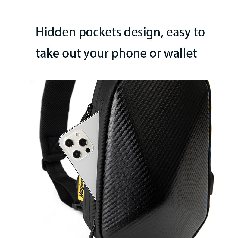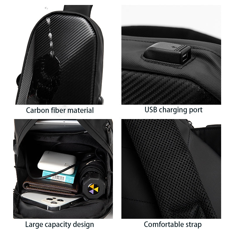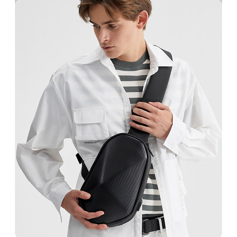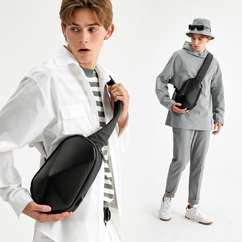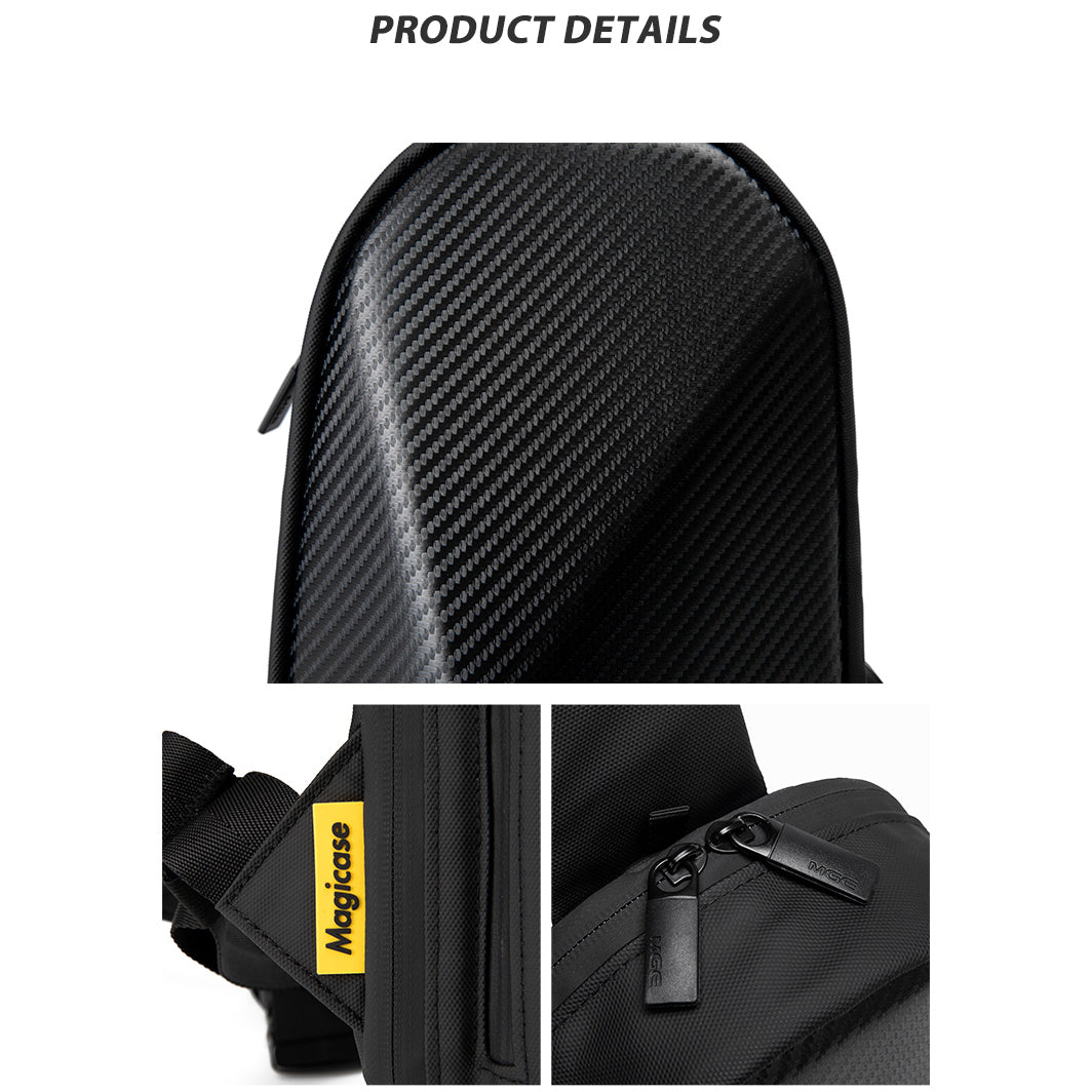Introducing the new MGE Zero Crossbody Chest Bag, crafted with multi-functional carbon fiber to make a fashion statement. Its lightweight grace is perfect for on-the-go convenience, while its waterproof feature ensures all your essentials stay protected. Enjoy a classic, luxurious aesthetic that is sure to turn heads.