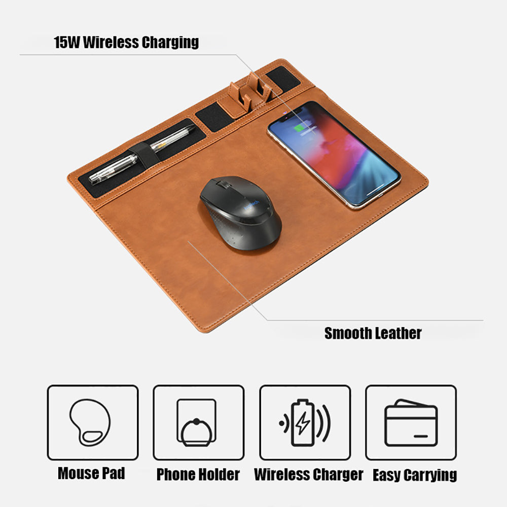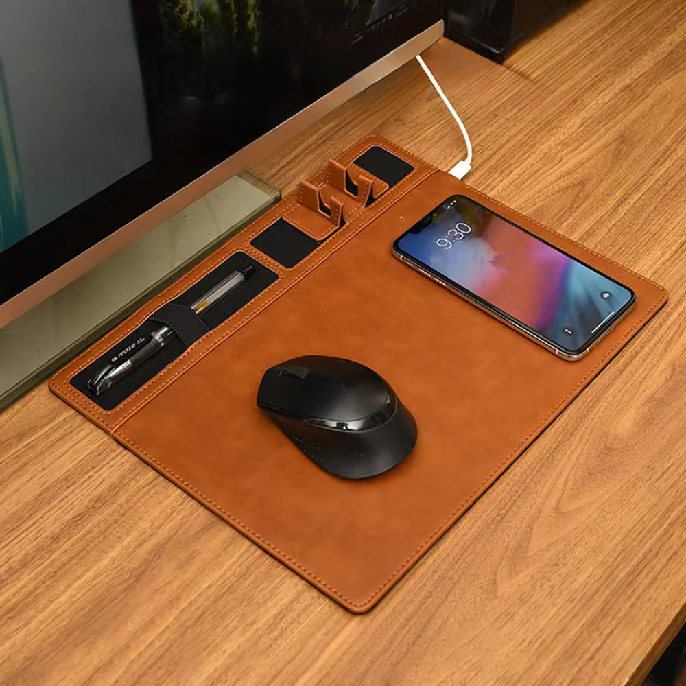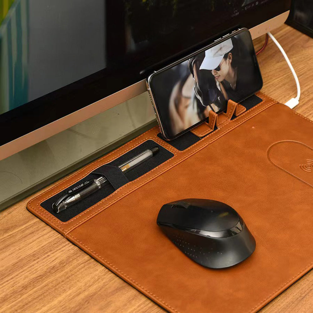Multifunction Leather Mouse Pad With Wireless Charging And Phone Holder
